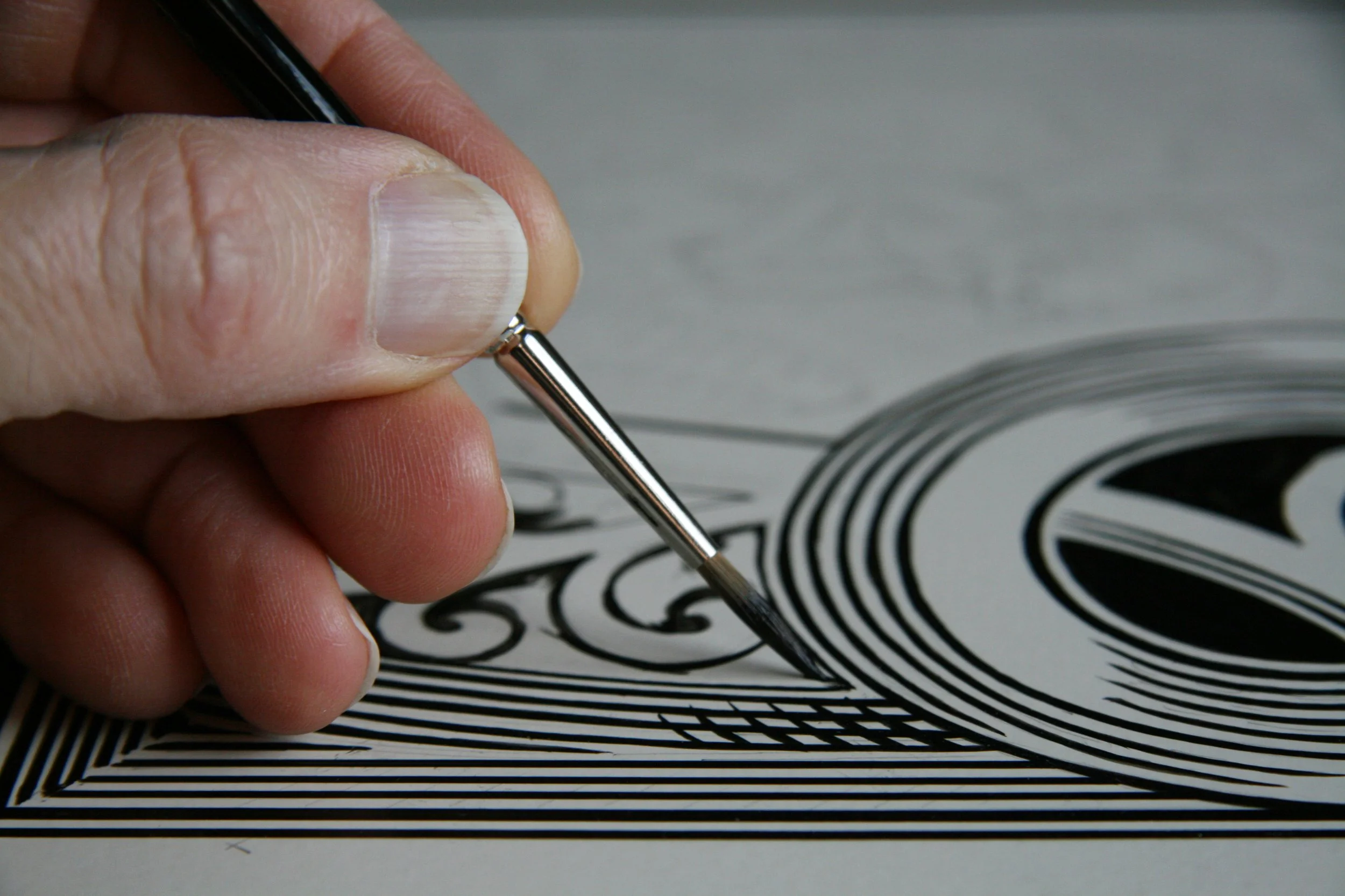 Brush and ink on scratchboard is Stutzman’s preferred art form for playing card designs. Once a design is inked, the art is scanned and converted to a vector file. Additional digital edits aim to preserve the hand-crafted nature of his art.